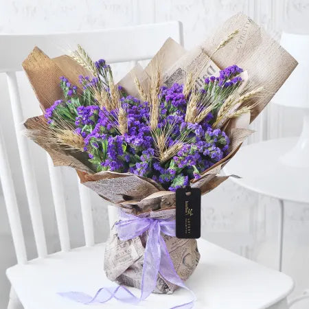 Capturing the essence of a bountiful countryside farm in all its rustic charm, this chic dry bouquet tells a beautiful story of nature’s timeless romance. With its earthy tones and delicate textures, it evokes a sense of tranquility and nostalgia, reminding us how the Earth smiles through its flowers. Perfect for those who appreciate nature’s beauty, this arrangement serves as a lasting tribute to the simple joys of life.